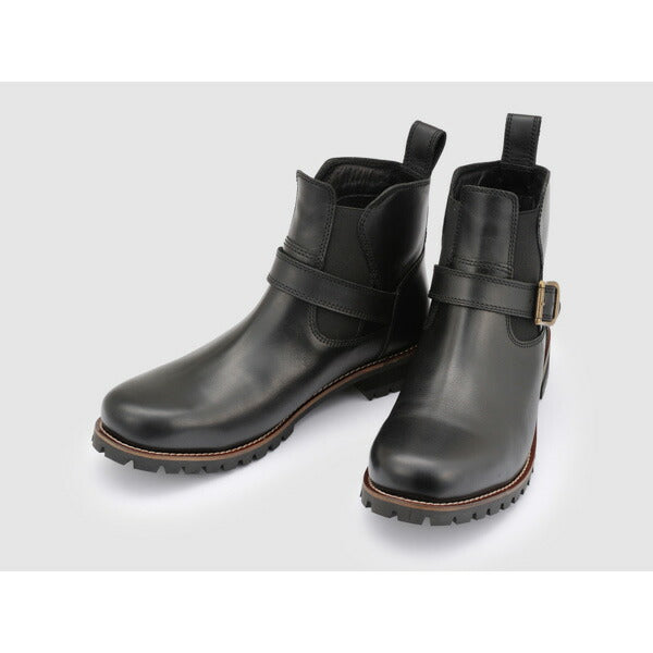 ゴムを織り込んだ伸縮性が高い布”ゴア”を履き口の両サイドに施すことで、シューレースがなくてもしっかりフィットするサイドゴアブーツ。かかとのタブを引きながらサイドのゴムで容易に脱ぎ履きできます。アッパーレザーは、軽くて初めからすぐになじむので歩きやすい牛革を採用。中央のベルトは適度なフィット感に3段階の調節が可能。